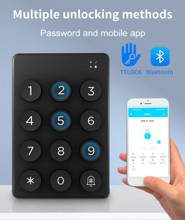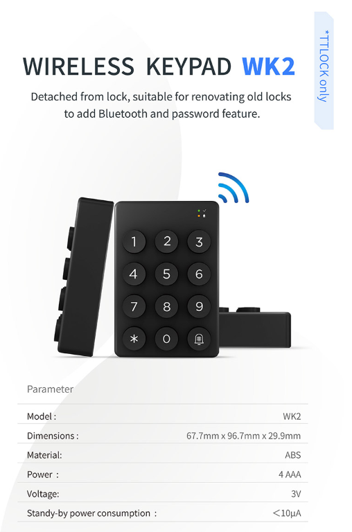 WK2Teclado digital sem fio TTLOCK compatível com dispositivos inteligentes Bluetooth TTLOCK e fechadura biométrica.